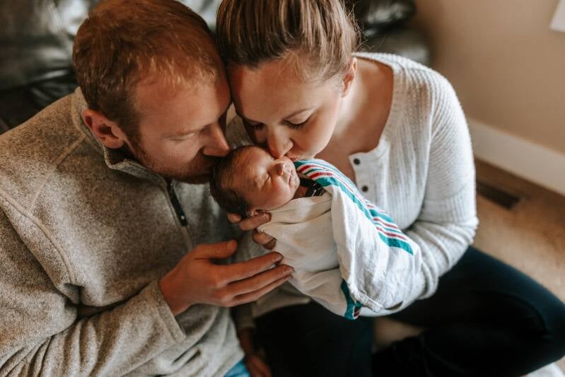 When Dylan was born, he was brought over to the warmer and wrapped up just as I requested. When the nurse tried to hand him to me, I couldn’t do it. All I could do was cry as I was laying there. The nurse asked Jon if he wanted to hold Dylan, and Jon took Dylan and held onto him.